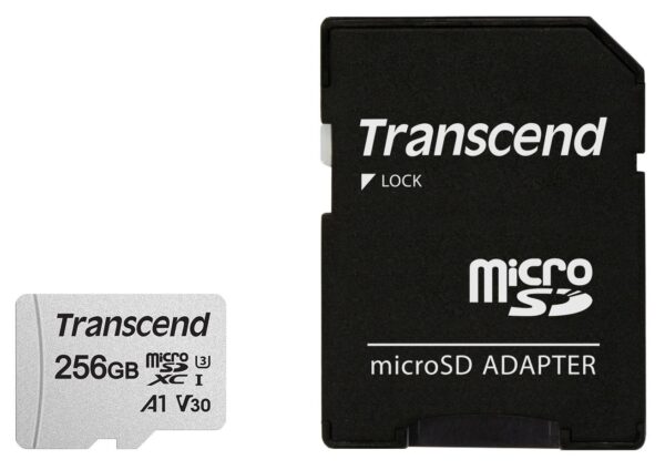 | Summary | Transcend microSD Card SDXC 300S 256GB with Adapter. Capacity: 256 GB, Flash card type: MicroSDXC, Internal memory type: NAND, Read speed: 95 MB/s, Write speed: 40 MB/s, UHS Speed Class: Class 3 (U3), Video Speed Class: V30. Protection features: Shock resistant, Static proof, Temperature proof, Waterproof, X-ray proof, Product colour: Silver |