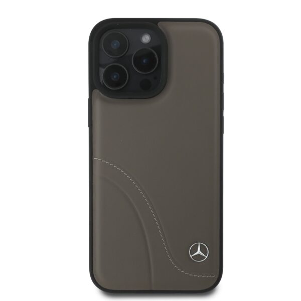 Mercedes Curved Stitches Leather dėklas skirtas Apple iPhone 16 Pro rudos spalvos