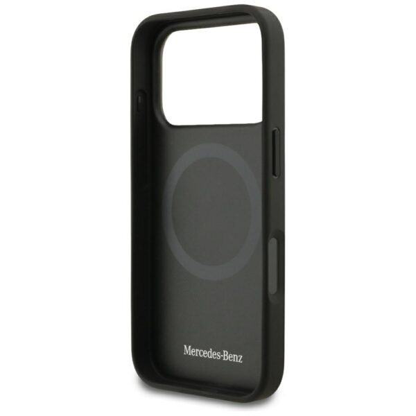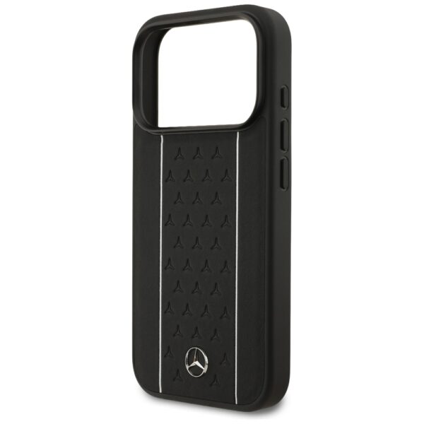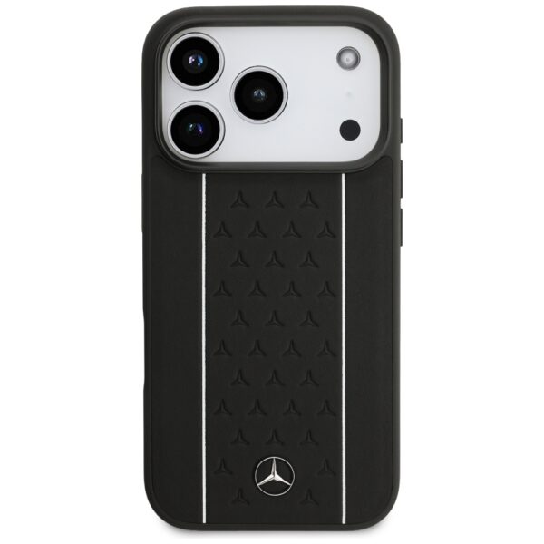 Mercedes Leather Star Pattern Stripes MagSafe dėklas skirtas Apple iPhone 17 Pro juodos spalvos