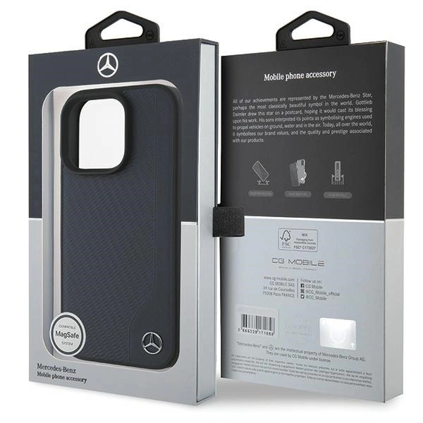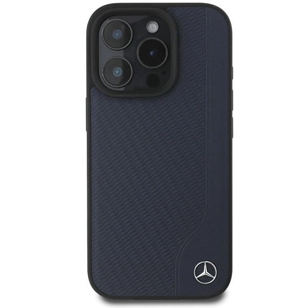 Mercedes MB Wood Imitation Leather MagSafe Apple iPhone 16 Pro Max – Navy dėklas telefonui mėlynos spalvos