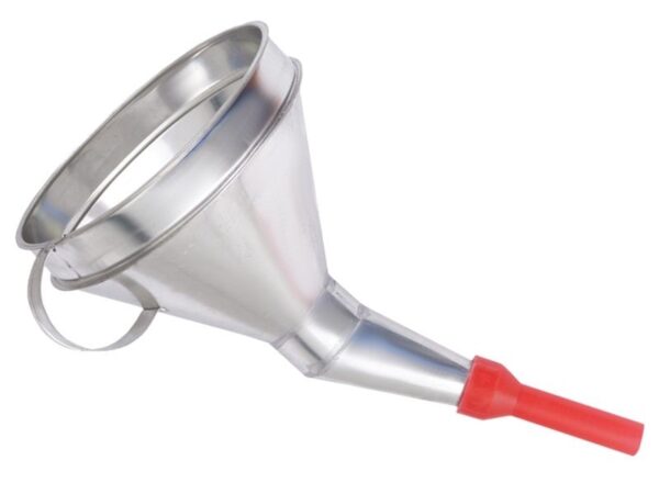 It facilitates the transfer of gasoline from the jerrycan to the tank. Indispensable in every workshop and home household.
