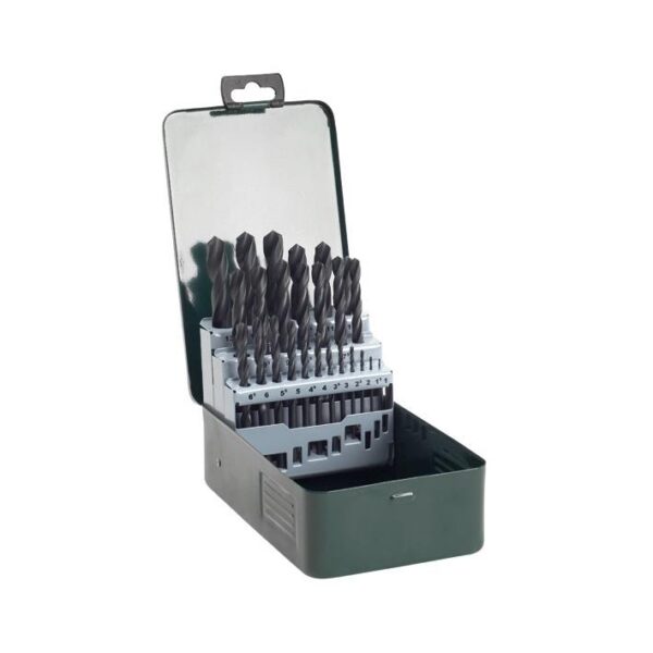 Prekės ženklas- Bosch. Ilgis- 15.1 cm. Darbinės dalies ilgis- 10.1 cm. Skersmuo- 13 mm. Grąžto tipas- HSS. Tvirtinimo tipas- Tiesus. Komplekte- 25 vnt: 1; 1,5; 2; 2,5; 3; 3,5; 4; 4,5; 5,5; 6; 6,5; 7,5; 8; 8,5; 9; 9,5; 10; 10,5; 11; 11,5; 12; 12,5; 13 mm. Apdirbama medžiaga- Metalas. Garantija- 24 mėn. Papildoma informacija- Komplektas metalo gręžimui. Laikiklis.