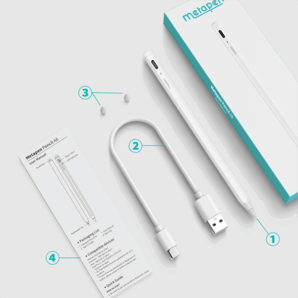 The Metapen Pencil A8 charges in about 30 minutes and provides up to 10 hours of use. A quick charge gets you back to work quickly, and automatic shutdown after a period of inactivity helps conserve energy.