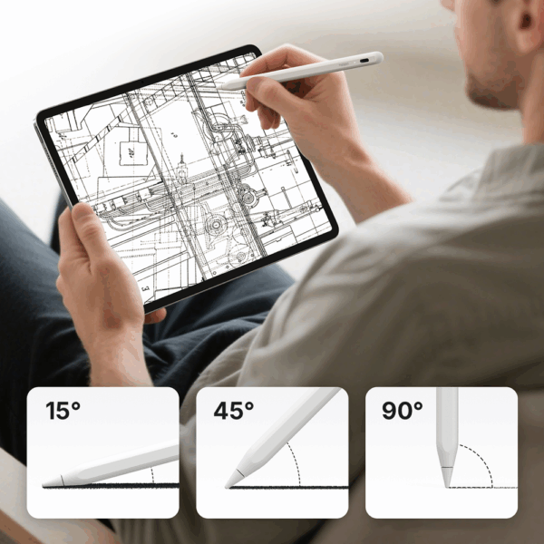 The Metapen Pencil A8 is a precision writing and drawing tool designed for iPad users. It allows for comfortable note-taking, sketching, and working with creative apps, offering a natural experience similar to a traditional pencil. Thanks to tilt sensitivity and high pixel accuracy, the stylus allows you to create thin lines and delicate shadows without lag or skipping. Its slim design, magnetic mount, and long battery life make the Metapen A8 suitable for both everyday use and intensive work.