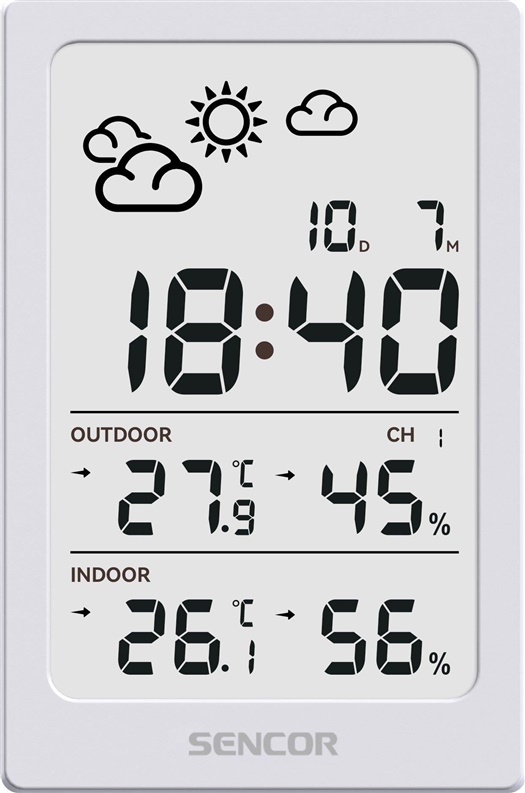 Prekės ženklas- Sencor. Modelis- SWS 2300 W. Maitinimo šaltinis- Baterija. Akumuliatoriaus/baterijos tipas- AA baterija, AAA. Laikrodis- Taip. Žadintuvas- Taip. Temperatūros matavimas namuose- -10 – 50°C. Temperatūros matavimas lauke- -40 – 60°C. Su drėgmės davikliu- Taip. Garantija- 24 mėn.