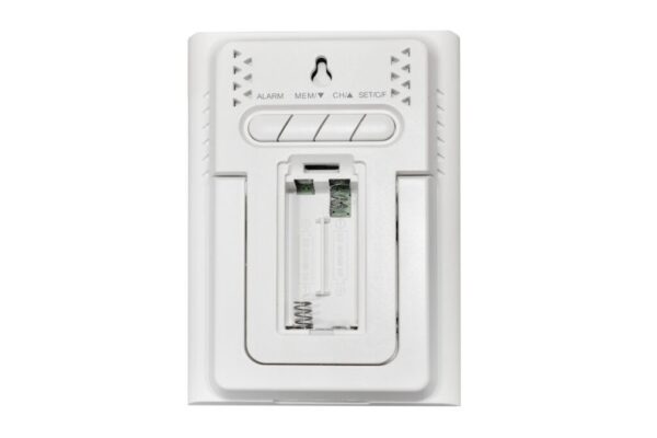 - Maitinimas su baterijomis, tiek stoties, tiek išorinio belaidžio jutiklio baterijomis.