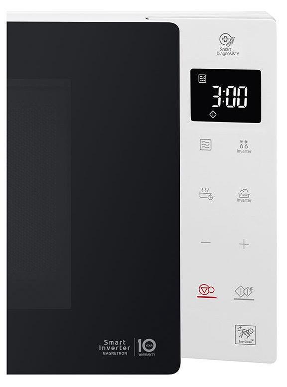 Prekės ženklas- LG. Modelis- MS23NECBW. Įmontuojama- Ne. Pastatoma- Taip. Plotis- 47.6 cm. Gylis- 34.6 cm. Aukštis- 27.2 cm. Talpa- 23 l. Svoris- 8.6 kg. Spalva- Balta. Galia- 1000 W. Galingumo lygiai- 6. Vidaus padengimas- Antibakterinė danga. Valdymas- Sensorinis. Su apšvietimu- Taip. Grilis- Ne. Funkcijų skaičius- 8. Ekranas- Taip. Laikmatis- Taip. Atšildymo funkcija- Taip. Apsauga nuo perkaitimo- Taip. Vaikų saugos funkcija- Taip. Konvekcinė- Ne. Garantija- 24 mėn.