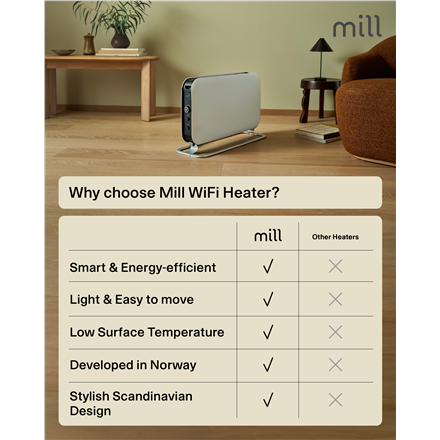 Mill | Heater | CO1200WIFI3 GEN3 | Convection Heater | 1200 W | Number of power levels 3 | Suitable for rooms up to 14-18 m² | White | N/A