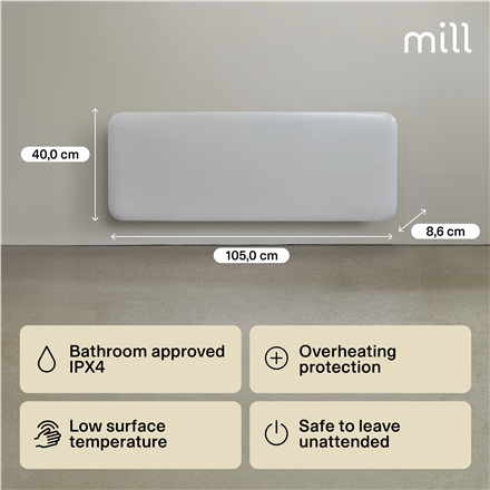 Mill | Heater | IB1200DN Steel | Panel Heater | 1200 W | Number of power levels 1 | Suitable for rooms up to 14-18 m² | White | N/A