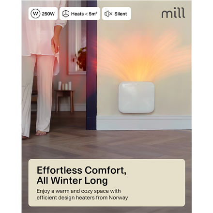 Mill | Heater | IB250 Steel | Panel Heater | 250 W | Number of power levels 1 | Suitable for rooms up to 2-5 m² | White
