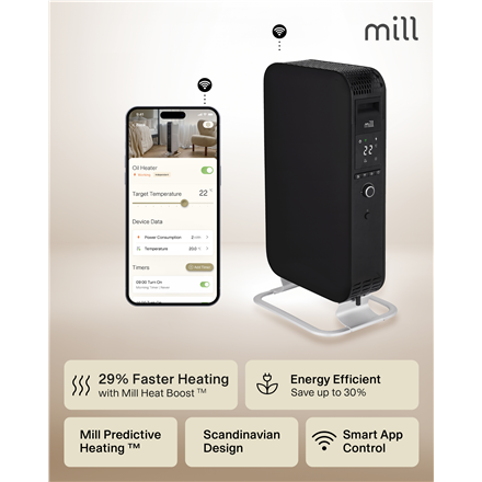 Mill | Heater | OIL1500WIFI3 Gentle Air | Oil Filled Radiator | 1500 W | Suitable for rooms up to 22 m² | Black