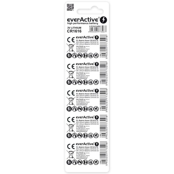 Mini everActive CR1616 ličio baterija – lizdinė plokštelė su 5 vnt.