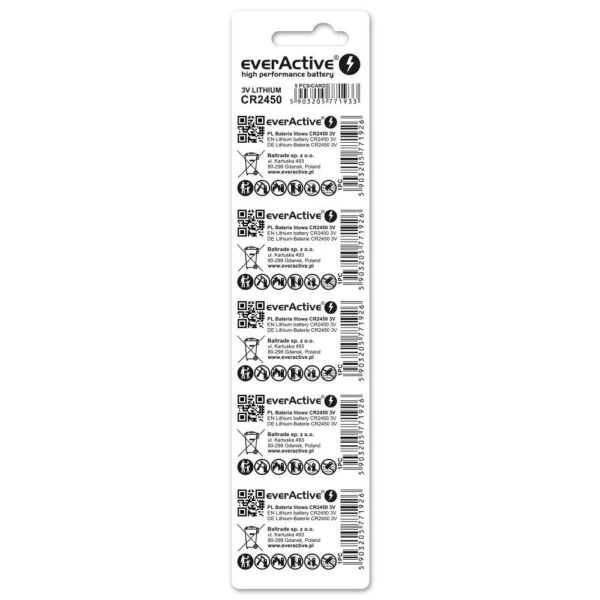 Mini everActive CR2450 ličio baterijos lizdinė plokštelė, 5 vnt.