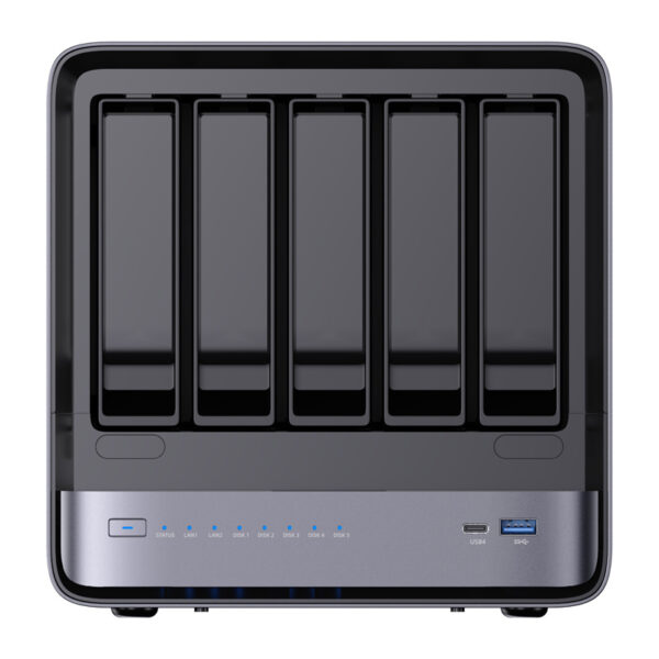 | HDD drive bays | 5 × 3.5″ / 2.5″ HDD (up to 22 TB per drive, SATA 3.0) |