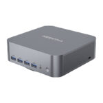 The G10 MiniPC surprises with the number and variety of ports available on its chassis. Two USB 3.2 (Universal Serial Bus, an interface standard for transferring data or powering devices) ports at 5 Gbps, combined with a USB 2.0 port, allow for lightning-fast data transfer and connection of peripherals. Two Type-C connectors – one supporting only PD (Power Delivery, a fast-charging standard), the other supporting DP (DisplayPort, allows audio and video to be transmitted over a single cable), data transfer and device charging – provide ultimate flexibility. With HDMI 2.1 (High-Definition Multimedia Interface, is used to transmit digital video and audio in high quality) and DisplayPort 1.4, you can easily create a graphics station with support for 4K resolution at 60 Hz, and the 2.5 Giga LAN (Local Area Network, local area network) slot allows ultra-fast network connection. You’ll also find a CTIA (The Wireless Association, originally known as the Cellular Telephone Industries Association) input on the chassis, a Kensington lock for added security, and a clear power button.