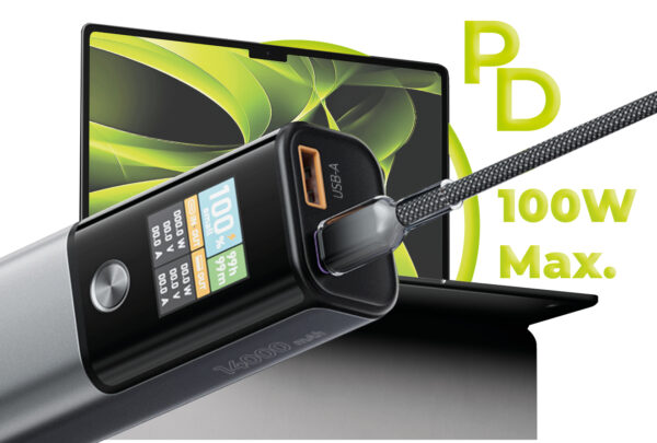 With support for Power Delivery technology delivering up to 100 W via the USB-C port, this power bank won’t back down from bigger challenges. You can seamlessly charge not only modern smartphones at maximum speed but also laptops, such as the MacBook Air.