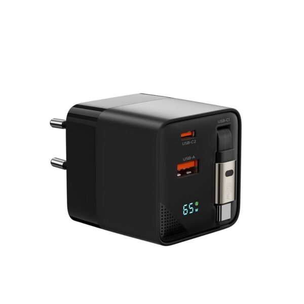 – GaN Power Charger with Display 65W PW2 – USB-C Cable + USB-C + USB-A