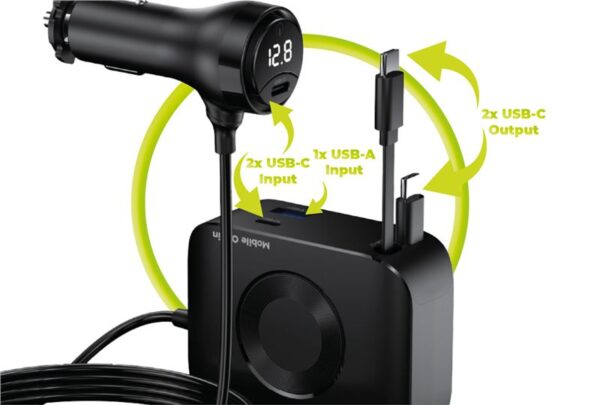 Mobile Origin 75W 5in1 automobilinis įkroviklis CA23 – 2x USB-C + USB-A Port, 2x USB-C kabelis