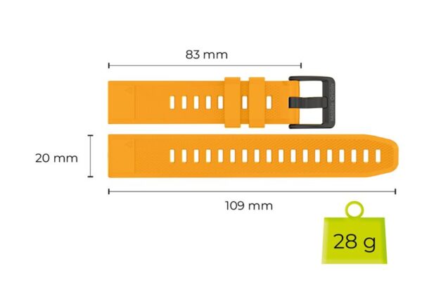 A sporty and durable strap designed specifically for Garmin watches with the Quick Fit attachment system. Made of high-quality silicone that ensures comfort during all-day wear and demanding training. The universal length adjustment is suitable for wrists with a circumference of 170 to 240 mm.