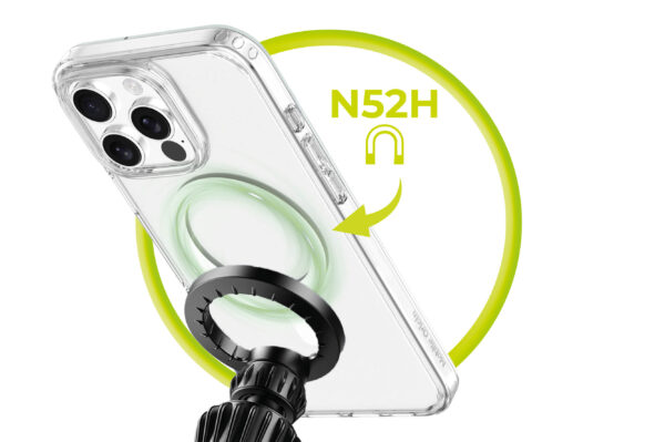 The magnets are placed with maximum precision—the case attaches to the charger with a clear click and holds firmly even when moving. It works with magnetic car mounts, wallets, and stands.