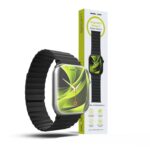 - Elegant Black Strap with Magnetic Closure for Apple Watch. Specifically designed for Apple Watch models 44 mm, 45 mm, 46 mm, and 49 mm, this stylish strap combines everyday comfort with a sporty, modern look. The magnetic closure is reinforced with a discreet metal safety lock, ensuring a secure fit even during movement. Made from soft yet durable silicone, it feels comfortable on the skin and resists dirt. The perforated design enhances breathability and provides all-day wearing comfort. Fits wrists up to 200 mm in circumference.