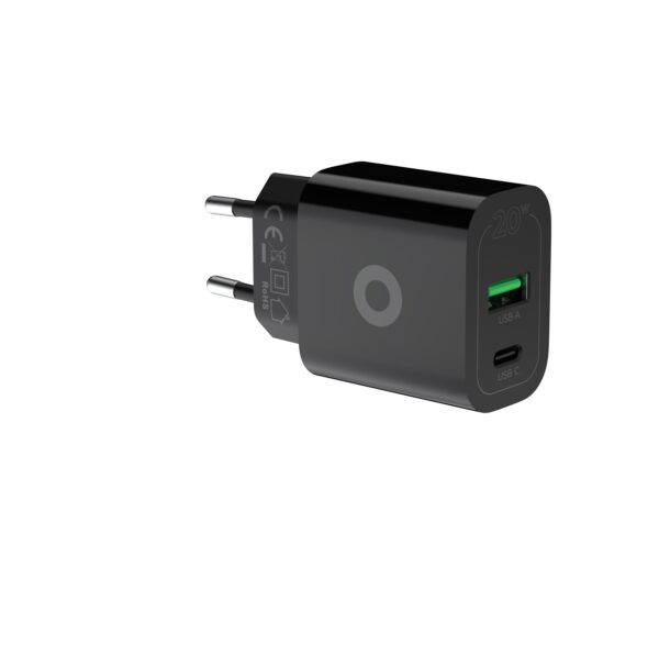 This PD20W Wall Charger offers 20W fast, efficient charging in a compact design. Dual ports, USB-A and USB-C, are used to charge two devices at once. Combining power, safety, and transferability – perfect for use at home or on the go!