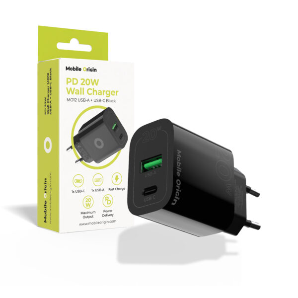 Mobile Origin Wall Charger MO12, PD20W – USB-A + USB-C