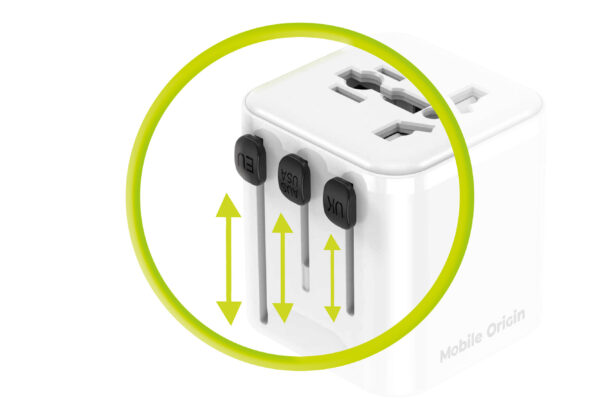 Explore a world without borders with the Mobile Origin PW30 Universal Travel Adapter. This essential companion is designed to connect your devices to the power grid virtually anywhere on the planet. Rely on a safe and simple solution that allows you to focus on your experience, not on finding the right outlet.