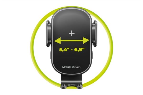 Just a touch: Press the button on the side — the two arms open, place your Qi-compatible phone, and charging starts immediately. The arms automatically lock securely. Press again to release – designed for your convenience.