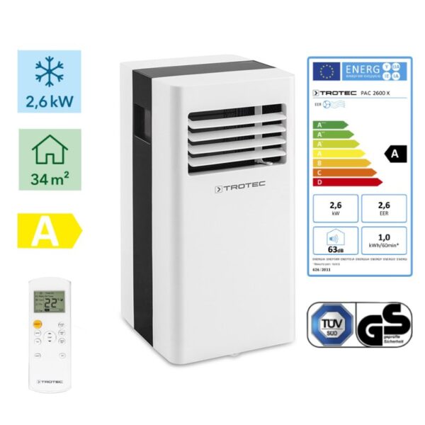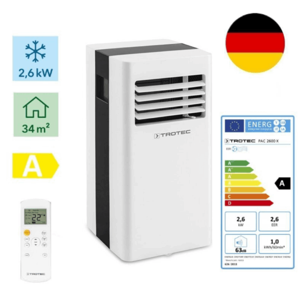 Oro kondicionierius Trotec PAC 2600 X turi oro sausinimo funkciją, kuri kovoja su tvankiu patalpos oru. Ši funkcija ištraukia drėgmę ir taip sukuria malonesnį kambario klimatą bei sumažina pelėsio atsiradimo tikimybę. Užpildyta kondensato bakelį retai reikia ištuštinti, nes kondensuotas vanduo pakartotinai naudojamas kondensatoriui aušinti, naudojant išmaniąją perdirbimo sistemą. Vėsinimo, vėdinimo ir drėgmės šalinimo funkcijos gali būti naudojamos atskirai, todėl įrenginys tinkamas naudoti ištisus metus. Oro kondicionieriaus nugarinėje pusėje sumontuotas lengvai valomas oro filtras, kuris valo patalpos orą nuo pūkų, dulkių ir gyvūnų plaukelių.