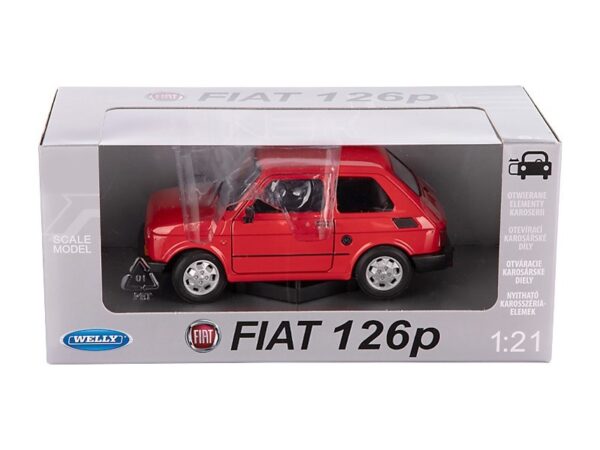 The FIAT 126p model is made of metal and plastic and has rubber tires.