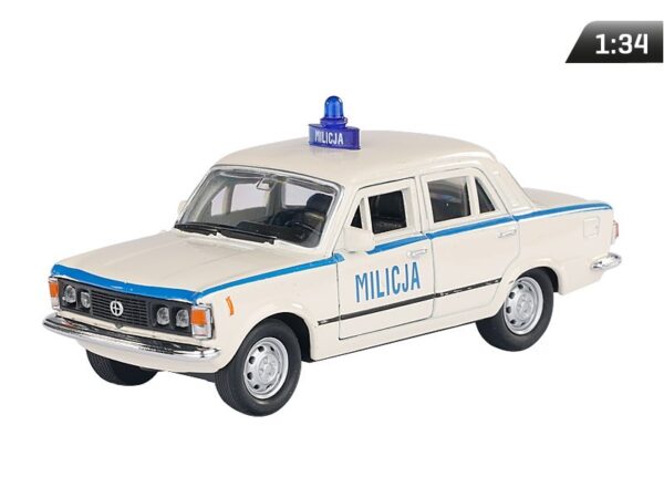 Modeliukas 1:34, PRL FIAT 125p MILICJA, baltos spalvos (A884F125MIB)