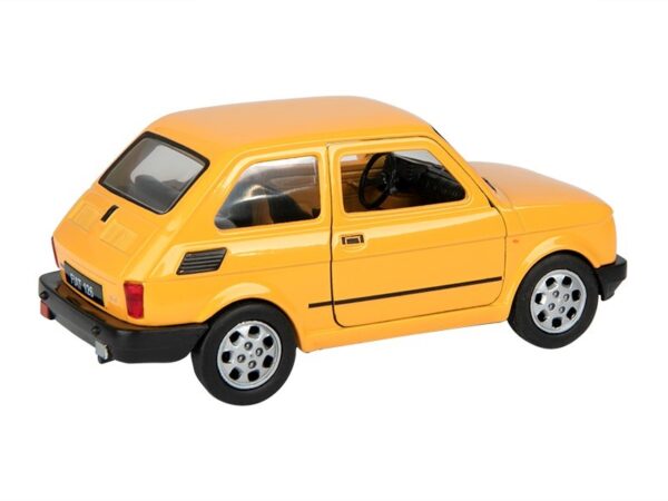 The FIAT 126p model is made of metal and plastic on rubber tires.