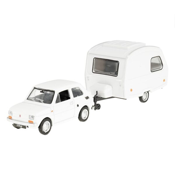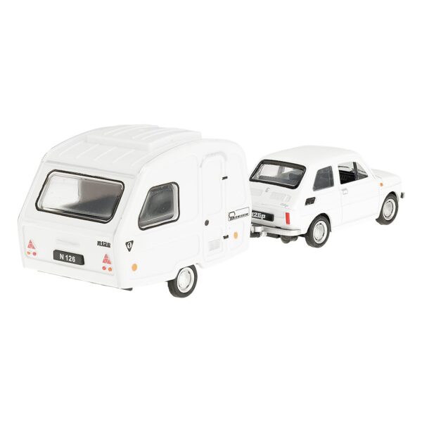 Modeliukas 1:43 Fiat 126p + Niewiadów caravan, baltos spalvos