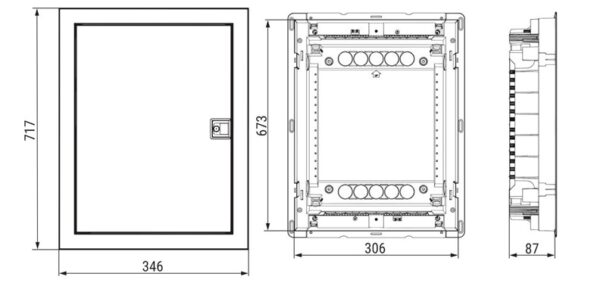 Prekės ženklas- ETI. Medžiaga- Metalas. Spalva- Balta. Skydo paskirtis- Elektros prietaisams montuoti . Modulių skaičius- 56. Montavimas- Potinkinis, Paslėptas. Apsaugos laipsnis (IP)- IP40. Aukštis- 673 mm. Plotis- 306 mm. Gylis- 87 mm. Su užraktu- Ne. Komplekte- PE/N gnybtai, laikikliai. Papildoma informacija- Apsaugos lygis (IP): IP40. Aukštis: 673 mm. Plotis: 306 mm. Gylis: 87 mm. Su užraktu: Ne.