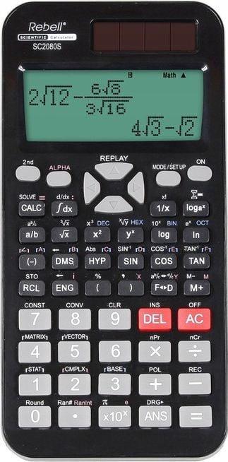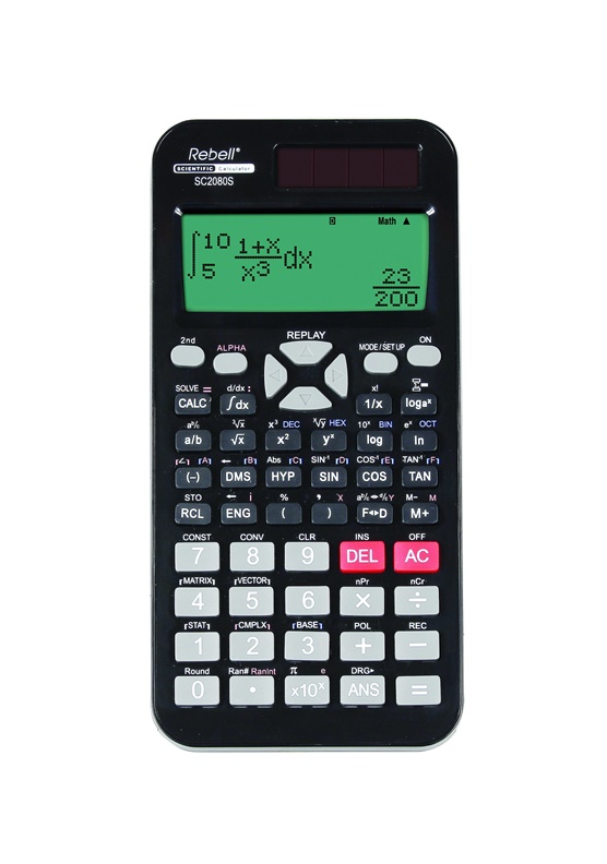 Prekės ženklas- Rebell. Artikulas- SC2080. Ilgis- 16.2 cm. Plotis- 8.2 cm. Aukštis- 1.8 cm. Spalva- Juoda. Medžiaga- Plastikas. Skaitmenys ekrane- 10. Skaičiuotuvo tipas- Mokslinis. Funkcijos- 417 mokslinės f-jos;Statistiniai skačiavimai;Trigonometrinės f-jos;Hiperbolinės f-jos;Logoritminės ir laipsnio f-jos; Trupmenos Šaknies f-ja; Atminties f-ja;Matricos ir vektoriaus skaičiavimai;Fizinės konstantos;CALC ir SOLVE f-ja;Skaitmeninė integracija ir diferenciacija;Tiesinės lygčių sistemos;Poliarinės ir stačiakampės koordinatės;Skaičiavimai: BIN, UŠT, DEC, HEX;Kartojimo ir atsakymo f-ja; Kampų keitimo f-ja; Šešioliktainių skaitmenų vertimas į dešimtainę ir atgal;Lentelių statistikos duomenų redaktorius.. Garantija- 24 mėn. Papildoma informacija- Kieti plastikiniai mygtukai;Kietas uždengimo dangtelis;Maitinimas saulės baterijomis ir elementais;Be tekstinės atminties..