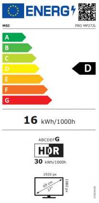 Prekės ženklas- MSI. Monitoriaus tipas- LCD monitoriai. Modelis- Pro MP272L. Plotis- 61.5 cm. Aukštis- 44.1 cm. Gylis- 20 cm. Svoris- 2.5 kg. Spalva- Juoda. Energinio efektyvumo klasė- D. Energijos efektyvumo klasės skalė- A – G. Ekrano tipas- IPS. Ekrano įstrižainė- 27 in. Ekrano raiškos tipas- FHD. Ekrano raiška- 1920 x 1080. Ekrano forma- Plokščias. Ekrano dažnis- 100 Hz. Ekrano paviršiaus tipas- Matinis. Reakcijos laikas- 4 ms. Kontrastas- 1300 : 1. Horizontalus stebėjimo kampas- 178 °. Ryškumas, cd/m²- 250. Vertikalus stebėjimo kampas- 178 °. Liečiamas ekranas- Ne. Jungtys- Headphone out, HDMI 1.4b, DisplayPort 1.2a. HDMI lizdų skaičius- 1. Tinka montavimui prie sienos- Ne. 3D funkcija- Ne. Reguliuojama- Palenkimas. TV funkcija- Ne. Įmontuotos garso kolonėlės- Ne. nVidia G-Sync- Ne. AMD FreeSync- Ne. VESA standartas- -. Privaloma garantija- 24 mėn. Garantija juridiniams asmenims- 12 mėn.