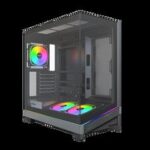 The glass front and side panels reveal the hardware and lighting, ensuring your build takes centre stage. Additional air intakes at the base and side maintain airflow, even though the case strongly emphasises presentation. This way, you get the open look of a showcase case without compromising unnecessarily on cooling.