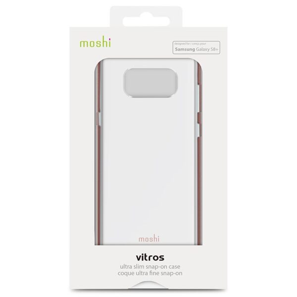 Moshi’s Vitros for Galaxy 8+ provides stylish protection for your new device, while keeping it slim and comfortable to hold. Vitros’ transparent backside accentuates the elegant look of your Galaxy S8+ and features a precision cut out for easy access to your phone’s rear fingerprint sensor and camera. Constructed using a durable yet pliable polymer, Vitros is easy to install and fully protects your device’s volume and power buttons. Available in Crystal Clear and color-frame options in Titanium Gray or Orchid Pink, Vitros safeguards your new Galaxy S8+ from scratches and shocks while preserving its sleek design.