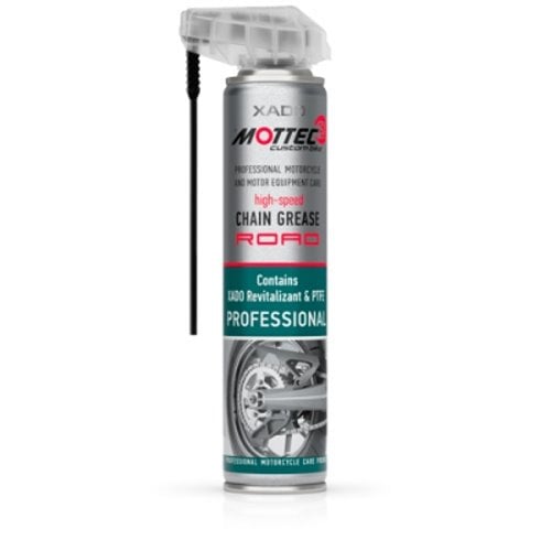Specialiai sukurtas didelių greičių sunkiai apkrautoms motociklų grandinėms. Sudėtyje yra revitalizanto ir PTFE. Naudojama motociklų grandinių sutepimui ir apsaugai nuo dėvėjimosi. Privalumai: Tepalas ypatingai lipnus, lieka ant grandinės net esant dideliems greičiams; Tepalas ypatingai skvarbus, patikimai sutepa visą grandinės darbinį paviršių ir prasiskverbia į sujungimus; Apsaugo nuo grandinės atsilaisvinimo; Apsaugo nuo korozijos; Politetrafluoretileno dėka grandinė lengvai juda per sistemą; Revitalizanto dėka yra atstatomos susidėvėjusios detalės. Sudėtis: Sintetinis tepalas,tirpiklis,priedai suteikiantis lipnumą, revitalizantas, PTFE, anglevandenilinės propilėno dujos. Naudojimas: Pašalinti purvą ir seno tepalo likučius; Supurtyti balionėlį; Išpurkšti tepalu vidinę grandinės pusę per visą ilgį, leisti padžiūti 5-10 minučių; Naudoti kas 300-500km, arba kiekvieną kartą patekus vandens ant grandinės.