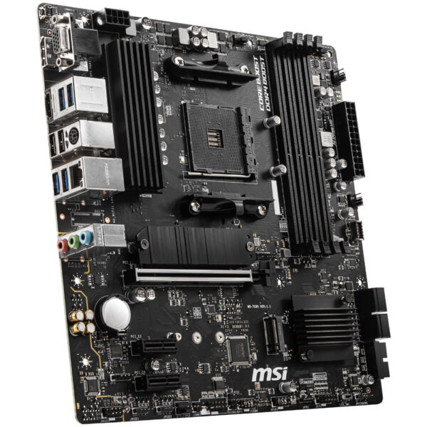 The MSI B550M Pro-VDH is equipped with the B550 chipset and is suitable for AMD processors with AM4 socket. The motherboard supports PCIe 4.0 for extremely fast graphics cards. With its Micro-ATX form factor, the MSI B550M Pro-VDH fits perfectly into the motherboard trays of particularly small and space-saving cases while offering numerous expansion options.