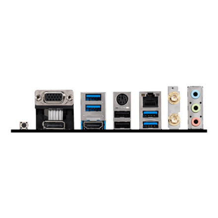 The MSI B550M Pro-VDH WiFi provides four USB 3.0 ports with type-A socket and two USB 2.0 ports on the I/O panel. For CPUs with an integrated graphics unit, a VGA, an HDMI, and a DisplayPort connection are available. A classic PS/2 connection for mouse or keyboard is also present.