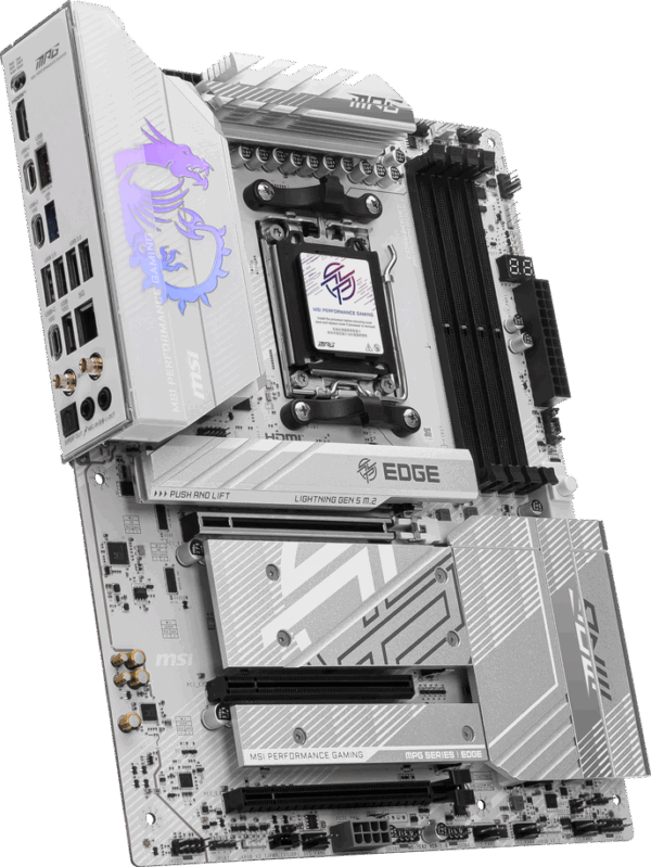 The MSI MPG B850 Edge TI WiFi is an ATX motherboard equipped with the mid-range AMD B850 chipset and the AMD AM5 socket. It supports Ryzen 9000-, 8000-, and 7000-series CPUs.
