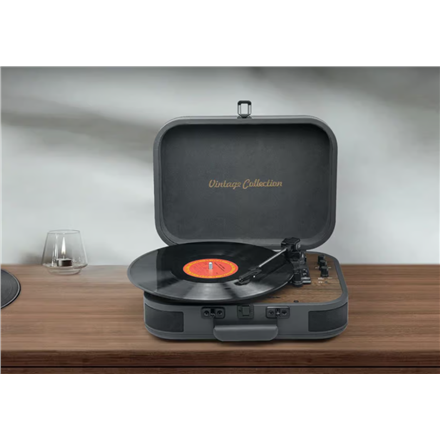 | Kitos savybės | 3 speeds stereo turntable 33/45/78 RPM; Bluetooth transmitter; Auto-stop ON/OFF switch |