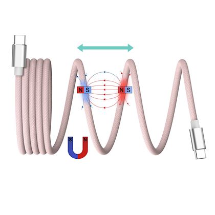 A convenient and elegant solution to your cable organization needs. Our cable comes in 6 different colors, always matching the style of your smartphone. The whole inner core of the cable is wrapped with magnetic material, full of magnetism. So you can easily wrap your charging cable to keep it organized and tangle-free. Innovative and functional! Our cable supports power delivery up to 60W.