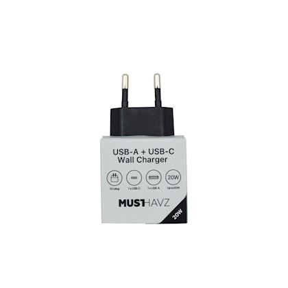 Musthavz to Go 2 Port PD įkroviklis USB-A + USB-C 20W, juodos spalvos