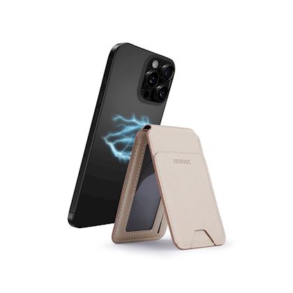 Attach the MagSafe Wallet with Stand to any smartphone that supports MagSafe. This cardholder and stand in one is highly functional and stylish. Crafted from high-quality and durable vegan leather, this card wallet integrates seamlessly with MagSafe technology. This allows you to magnetically attach it to the back of your smartphone or to any phone case that supports MagSafe. Never forget your cards again, as the card holder holds up to 3 cards.