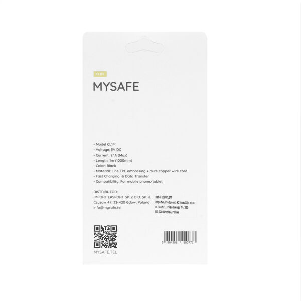 MYSAFE CABLE CL1M MICRO USB 1M BLACK
