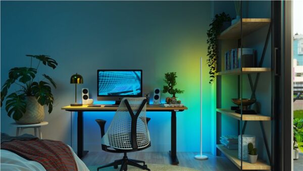 - Transform your space with the ambient illumination of our Matter-enabled Smart Multicolor Floor Lamp. The slim and minimalistic design fits effortlessly into any room, adding the perfect amount of ambient or accent lighting.