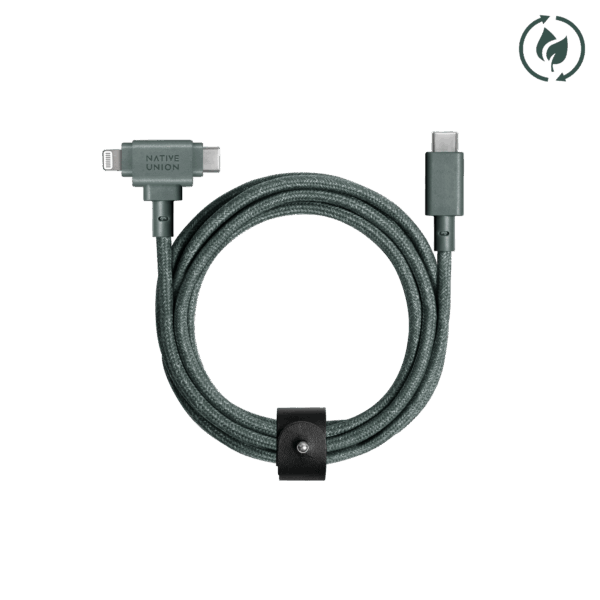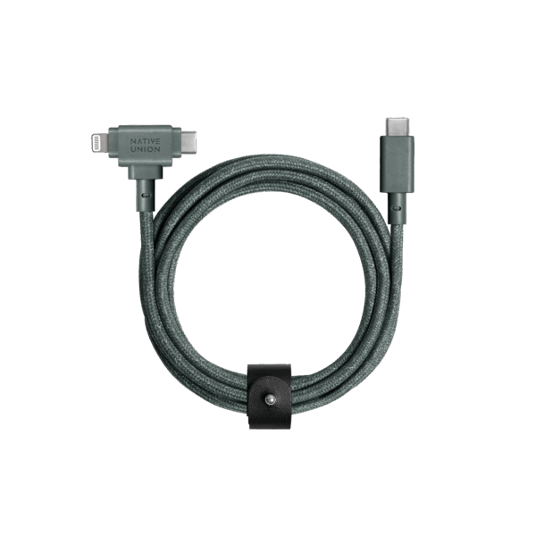 Native Union Belt kabelis Duo (USB-C – USB-C, Lightning) 1,5m, slate žalios spalvos